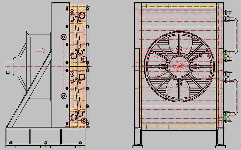 The cooler is one of the important components in the cooling system, installed at the front end of the compressor chassis. It is specially provided for the heat dissipation of the natural gas discharged by the compressor at all levels, and the compressor is equipped with a cooler after each level. Two coolers and one oil cooler are arranged horizontally to form a whole, and the three coolers are all finned tube coolers. All levels of compressed gas enter the cooler from the front, and then enter the next cylinder for compression after being cooled and filtered.
