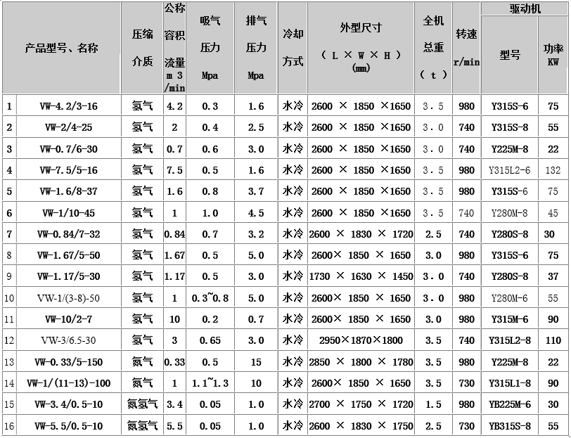 VW、DW系列氢气压缩机具有结构简单、运转平稳、噪音低、操作方便、安全可靠等特点。